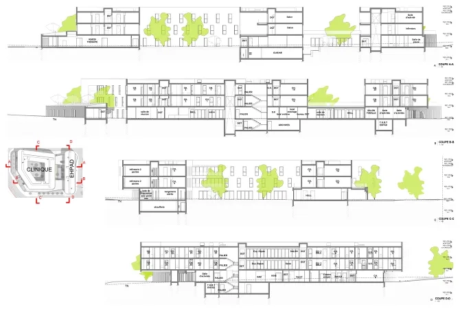 - Programme : clinique de 136 lits, Ehpad, résidence services seniors de 15 logements et une crèche ; maison médicale, centre de kinésithérapie, salle de sport rééducative et espace de restauration.