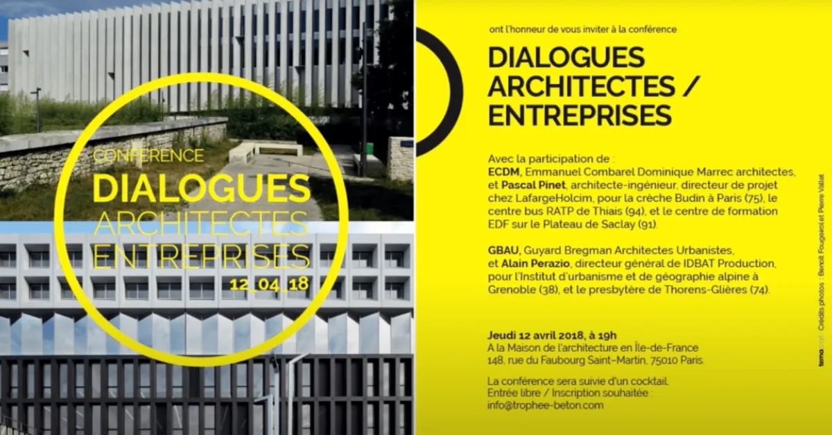 PARIS. 12 avril. La conférence Dialogue Architecte-Entreprise avec EDCM et GBAU organisée dans le cadre du Trophée béton, s'est déroulée à la Maison de l'architecture en IDF.