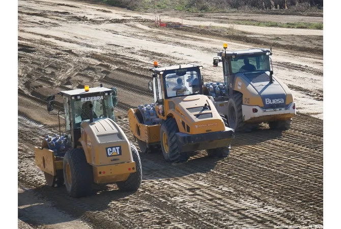 Chaque couche de matériaux a été compactée, conformément à la méthodologie définie lors de la planche d’essais, afin d’atteindre la compacité fixée.