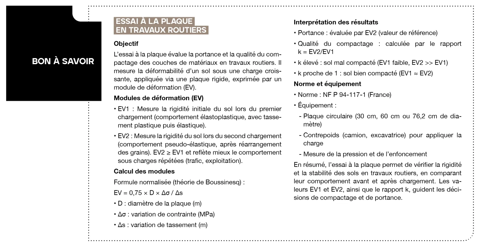 L’objectif fixé pour la plateforme support était une portance de niveau PF3, soit un module d’élasticité EV2 : 120 ≤ EV2 < 200 MPa.