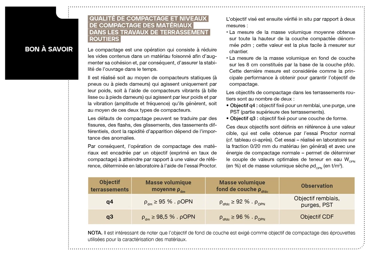 • En ce qui concerne le compactage, l’objectif était q3 pour les couches de forme et q4 pour les PST et les remblais courants. Ces contrôles ont été réalisés avec les méthodes suivantes :