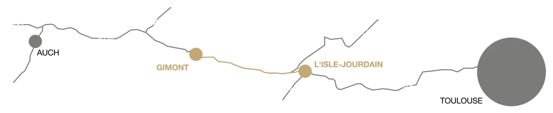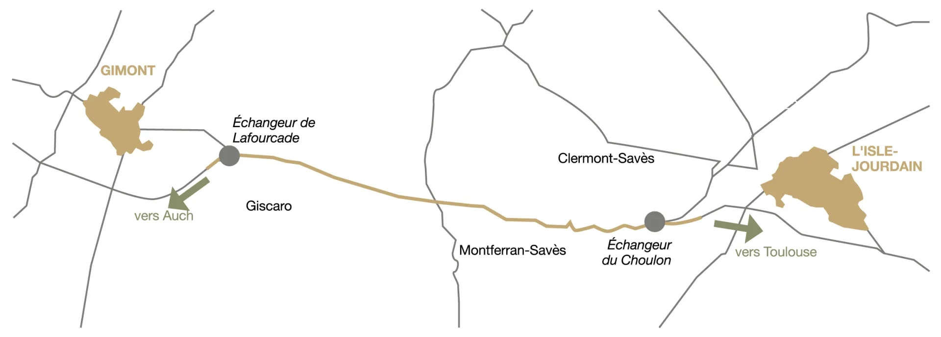 • La section entre Aubiet Est et L’Isle-Jourdain, composée de la déviation de Gimont (mise en service en 2022) et de la section Gimont – L’Isle-Jourdain, objet du présent reportage.