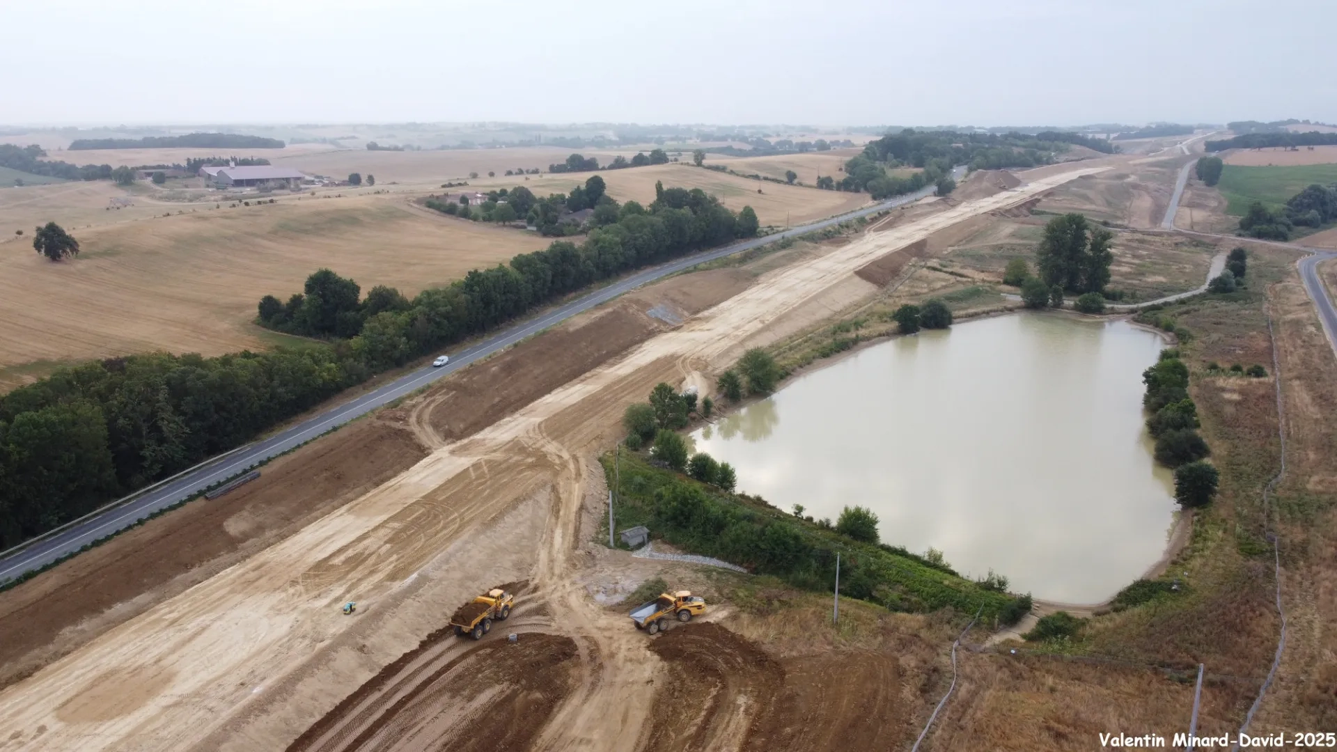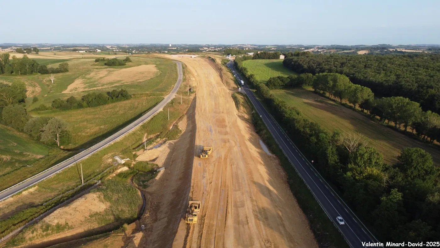 Vue générale du chantier de mise à 2 x 2 voies de la RN 124 entre Gimont et l'Isle-Jourdain. ©Valentin Minard-David/Roger Martin