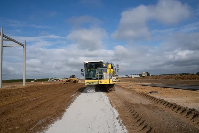 Un centre de distribution Ikea d’une superficie de 5,9 ha (59 000 m²) est en construction sur un terrain de 15 ha sis dans le port de Limay-Porcheville, à proximité de Mantes-la-Jolie (Yvelines). Il ouvrira ses portes à la fin de 2026. Une plateforme support traitée aux liants hydrauliques routiers ROC AS et ROC TR d’EQIOM, réalisée par Medinger & Fils, soutient le bâtiment et permet de créer les aménagements extérieurs ainsi que le réseau de voies lourdement circulées.