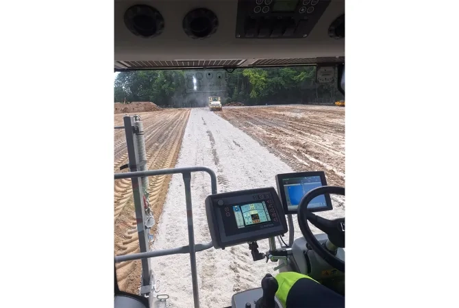 - Mise à la cote du matériau à l’aide d’une niveleuse assistée par GPS ;